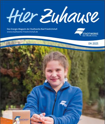 Unser Kundenmagazin Hier Zuhause erscheint vier Mal im Jahr und wird kostenlos an alle Haushalte in Bad Friedrichshall verteilt. Das Magazin enthält vielseitige Informationen, nützliche Alltagstipps, spannende News aus unserem Unternehmen, informiert über Veranstaltungen der Stadtwerke und gibt hilfreiche Tipps zum Thema Energie. Beim Gewinnspiel gibt es attraktive Preise zu gewinnen.